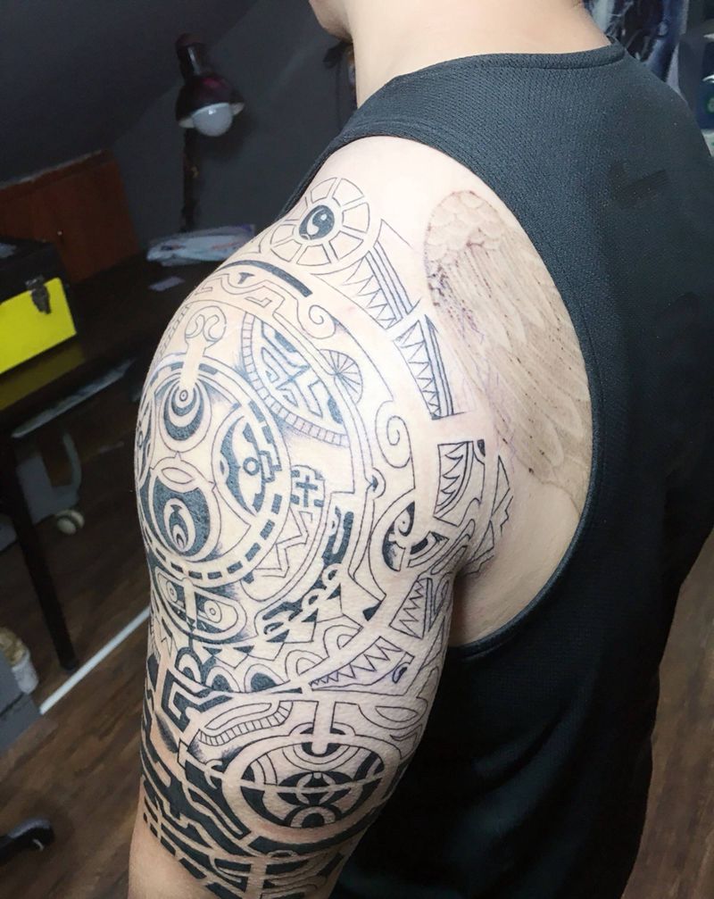 • 纹身吧推荐的披肩图腾半胛纹身图案作品展示