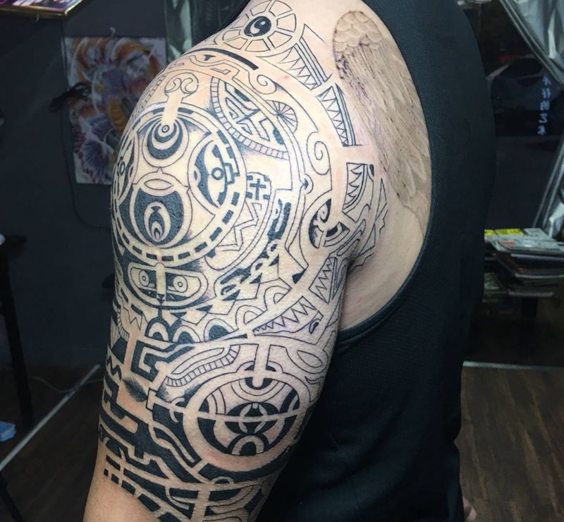 • 纹身吧推荐的披肩图腾半胛纹身图案作品展示