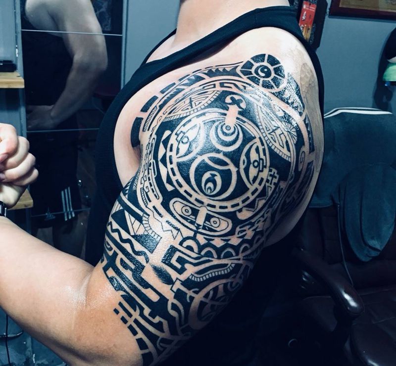 • 纹身吧推荐的披肩图腾半胛纹身图案作品展示
