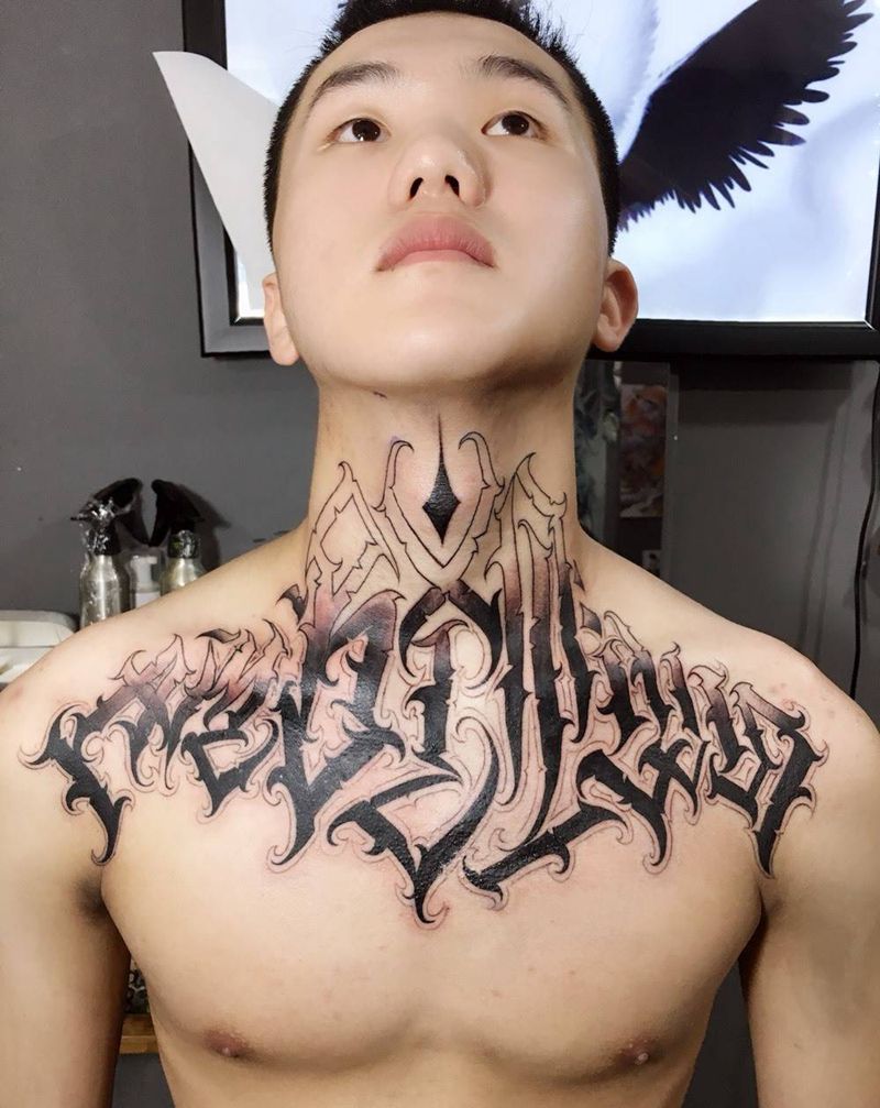 当前位置: 首页 >广东省深圳市纹身店-天羽刺青纹身图案>花体英文设计花胸纹身图片