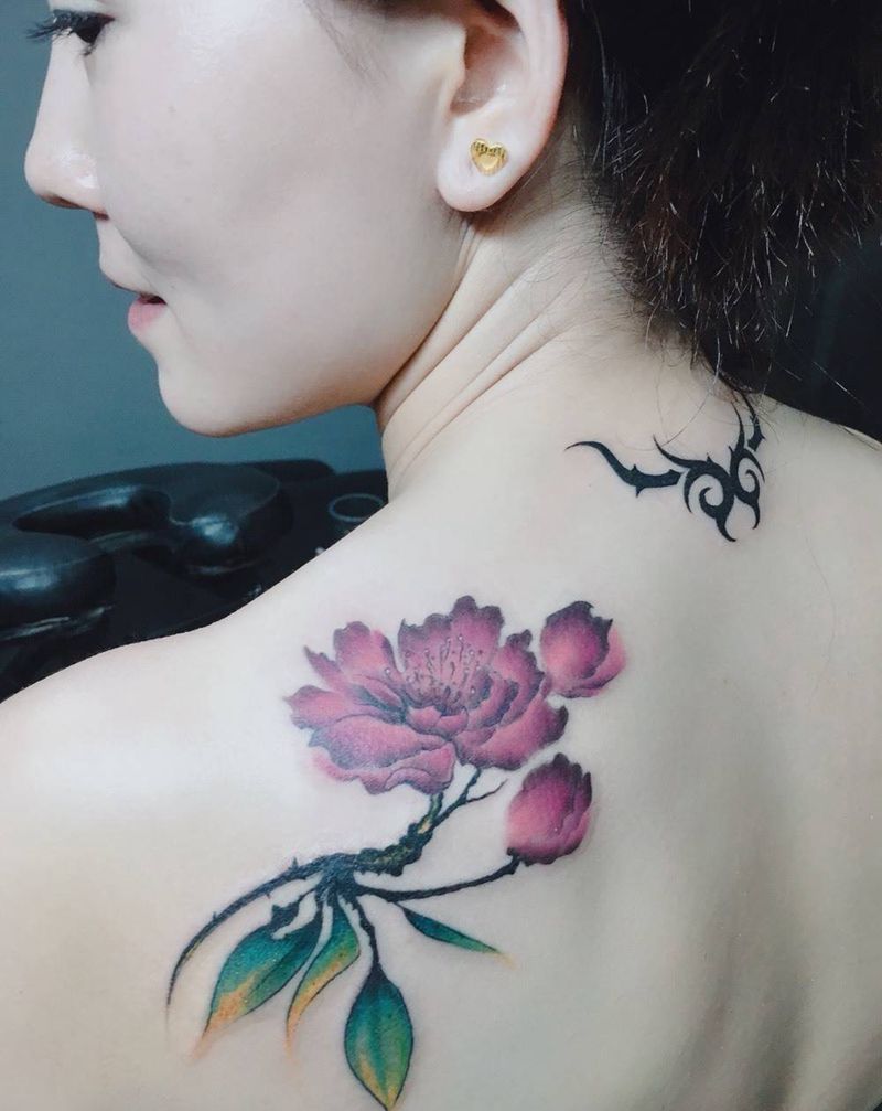 水彩牡丹花纹身图片