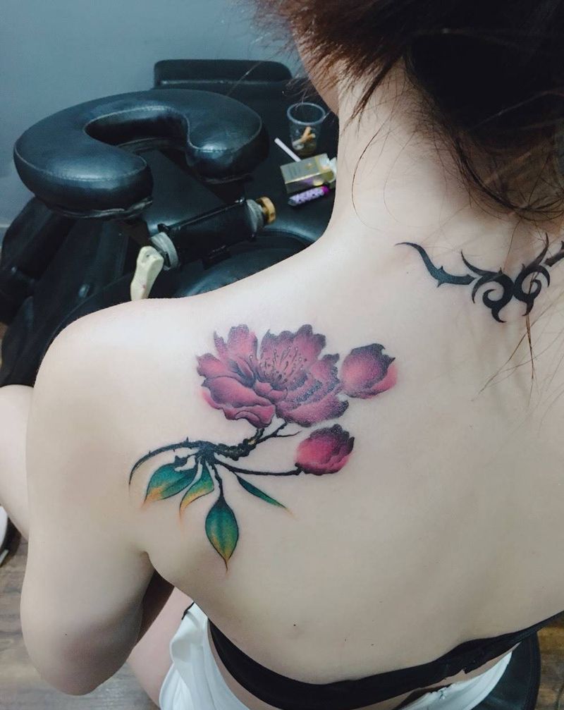 水彩牡丹花纹身图片