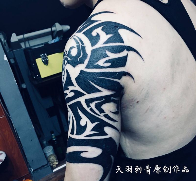 • 纹身吧推荐的披肩图腾半胛纹身图案作品展示