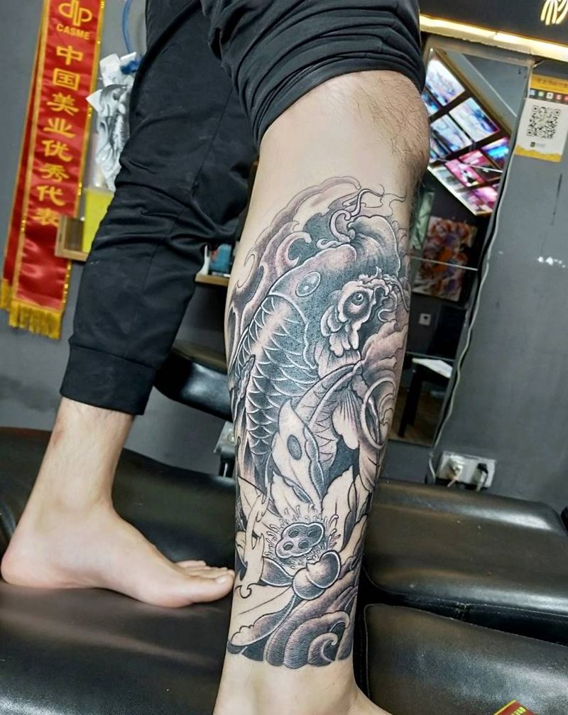 小腿锦鲤纹身图片
