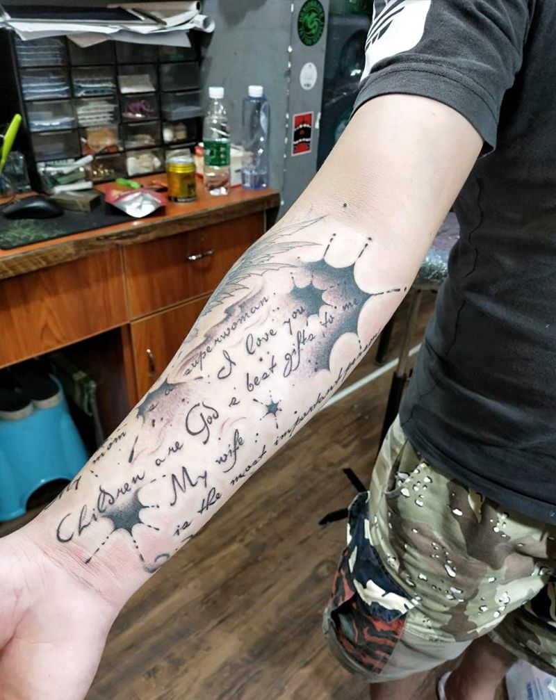• T家庭图,一家四口生日纪念!纹身图片_手臂纹身图案