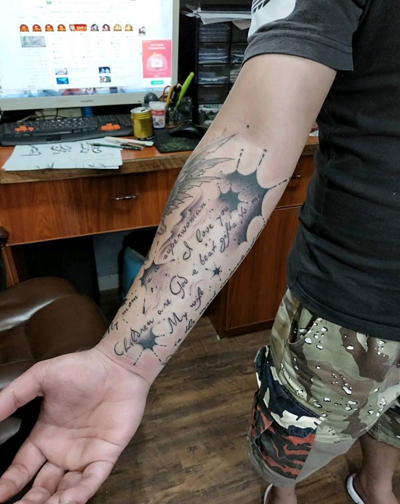 • T家庭图,一家四口生日纪念!纹身图片_手臂纹身图案