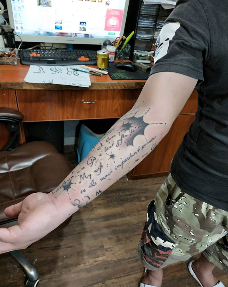 • T家庭图,一家四口生日纪念!纹身图片_手臂纹身图案