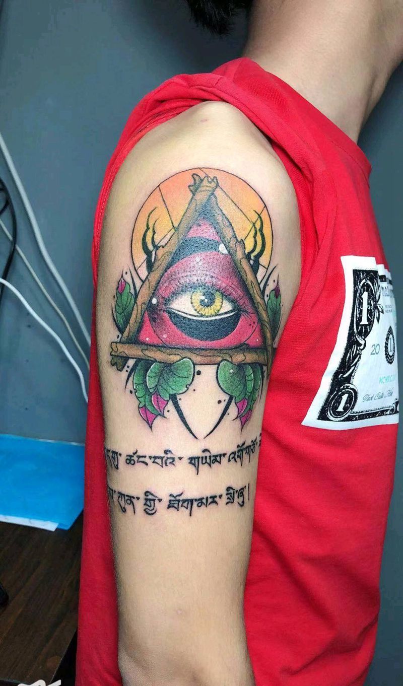 当前位置: 首页 >广东省深圳市纹身店-天羽刺青纹身图案>上帝之眼+藏文纹身图片
