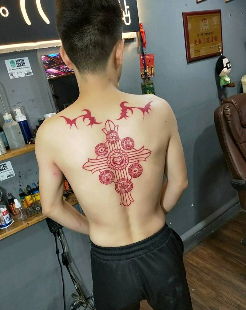 • 纹身吧推荐的披肩图腾半胛纹身图案作品展示