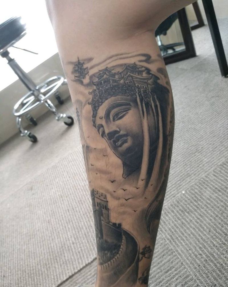 当前位置: 首页 >广东省深圳市纹身店-刺度纹身纹身图案>石狮长城纹身图片_腿部写实鬼神宗教原创深圳纹身图案