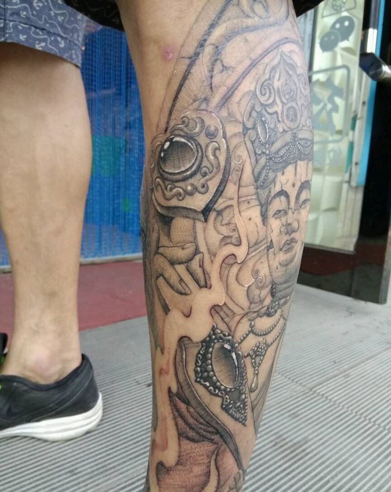 • T网红王老大花腿龙纹身图片_腿部新传统纹身图案