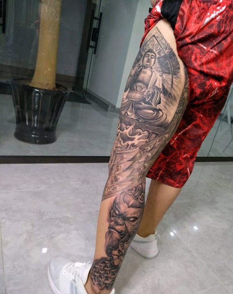 • T网红王老大花腿龙纹身图片_腿部新传统纹身图案