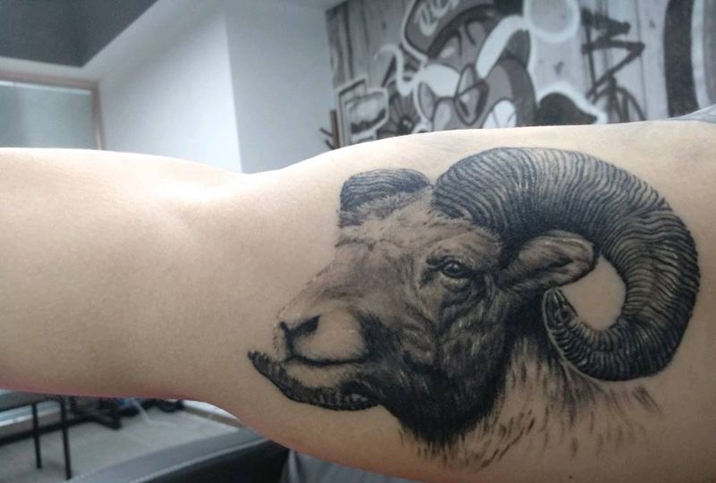 羊纹身图片_手臂写实动物原创深圳成品纹身图案