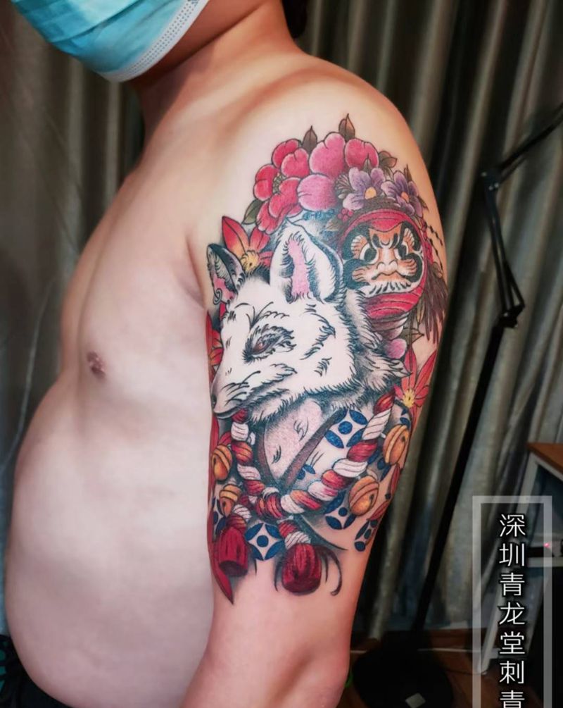 当前位置: 首页 >广东省深圳市纹身店-深圳青龙堂纹身工作室纹身图案>狐狸纹身图片_手臂新传统纹身图案