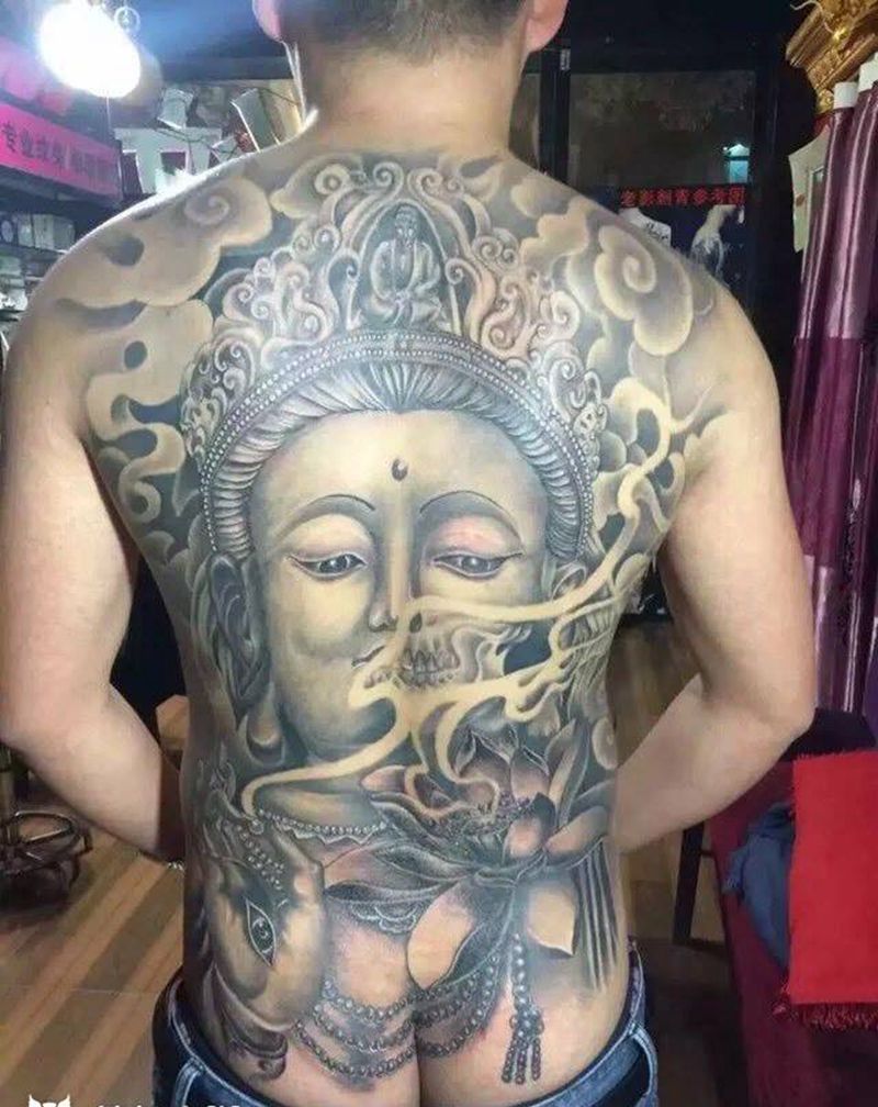 • 黑灰满背纹身图案