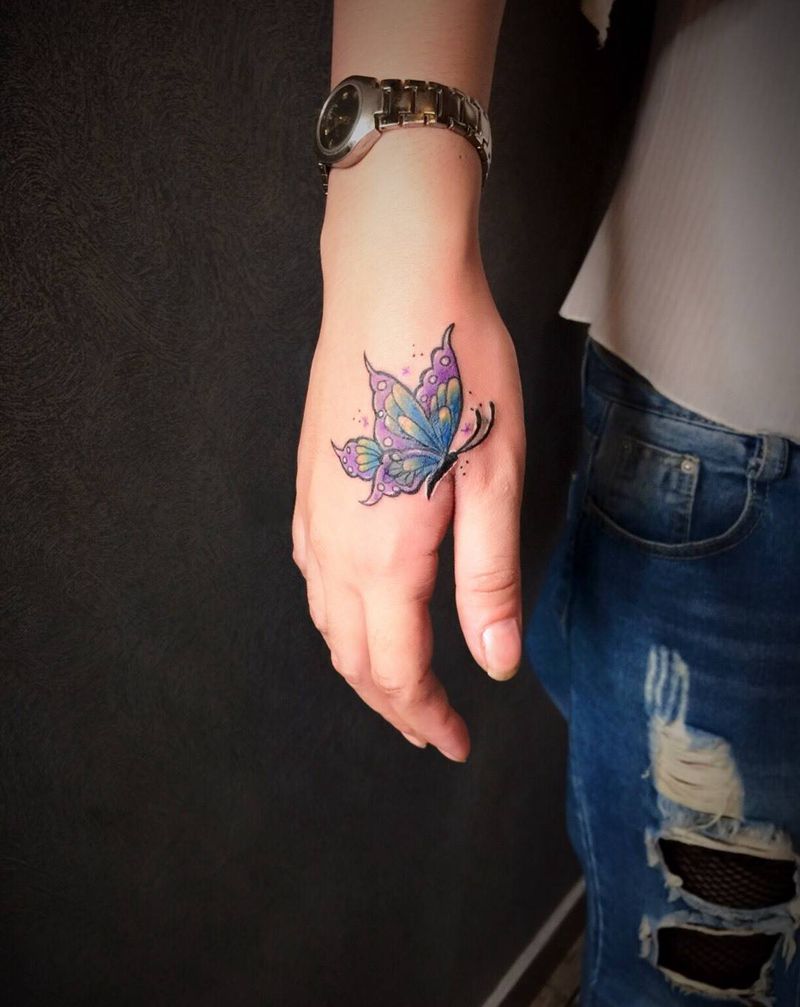 • 手背潮流时尚的玫瑰花眼睛纹身图案