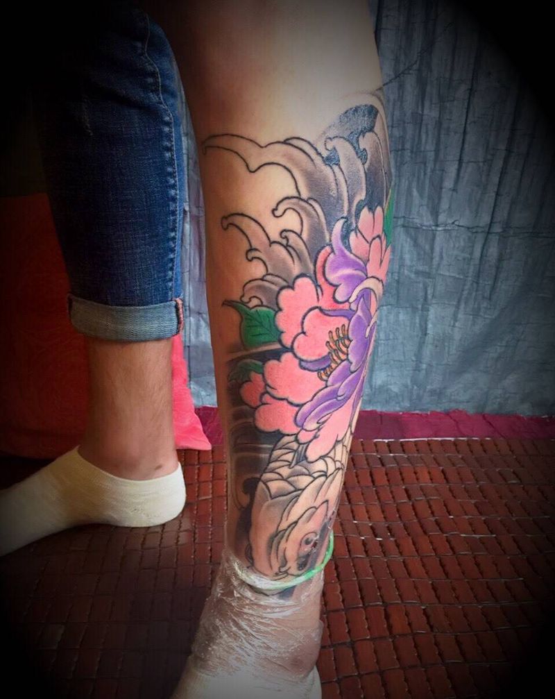 当前位置: 首页 >广东省深圳市纹身店-深圳青龙堂纹身工作室纹身图案>小腿鲤鱼未完纹身图片