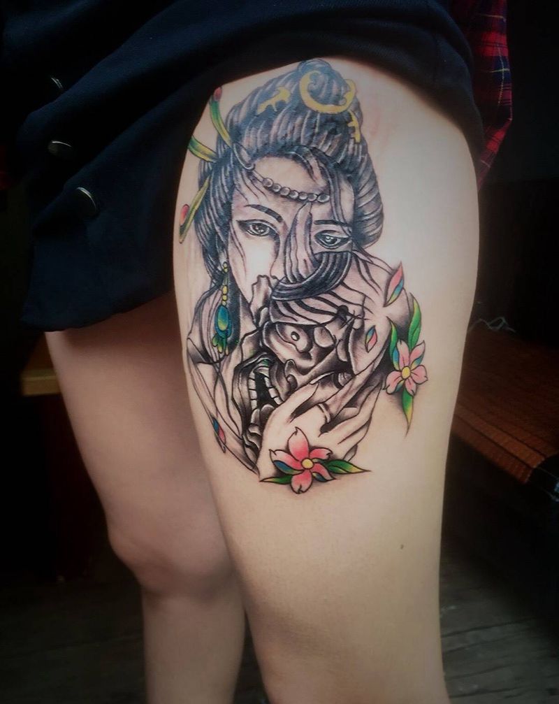 当前位置: 首页 >广东省深圳市纹身店-深圳青龙堂纹身工作室纹身图案>美女大腿遮盖妊娠纹,纹身图片