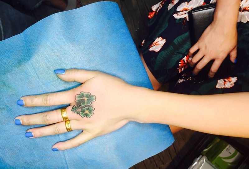 • 手背潮流时尚的玫瑰花眼睛纹身图案