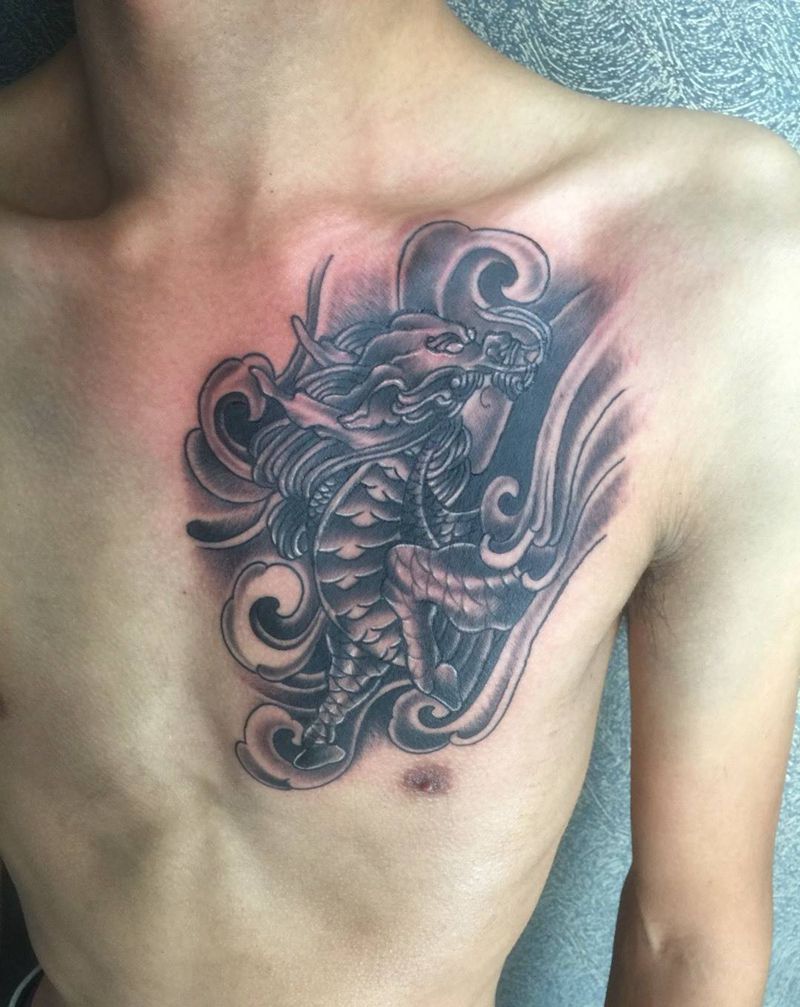 胸口麒麟纹身图片