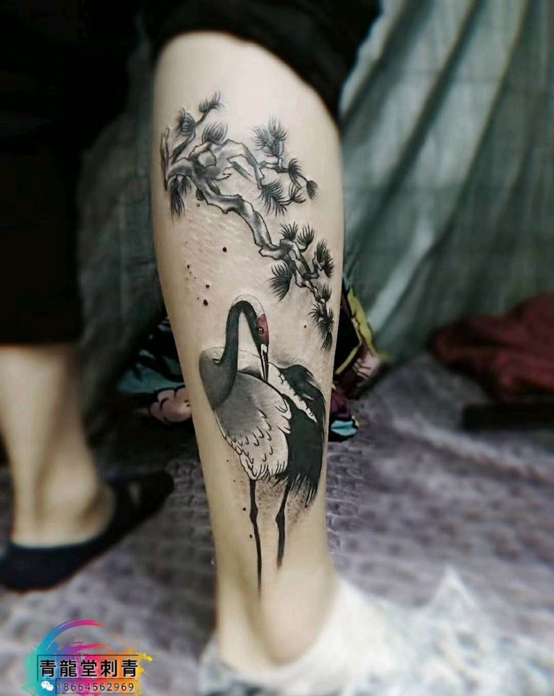 • T网红王老大花腿龙纹身图片_腿部新传统纹身图案