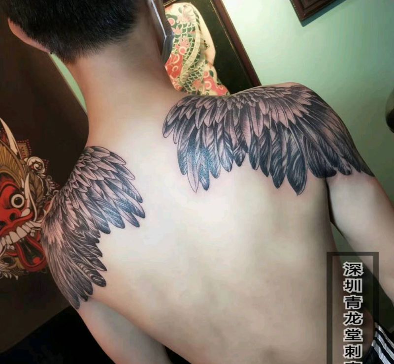 当前位置: 首页 >广东省深圳市纹身店-深圳青龙堂纹身工作室纹身图案>翅膀纹身图片_肩部欧美写实纹身图案