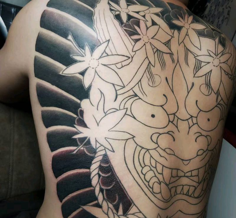 黑灰满背纹身图案