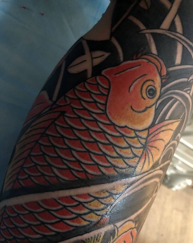 • T网红王老大花腿龙纹身图片_腿部新传统纹身图案