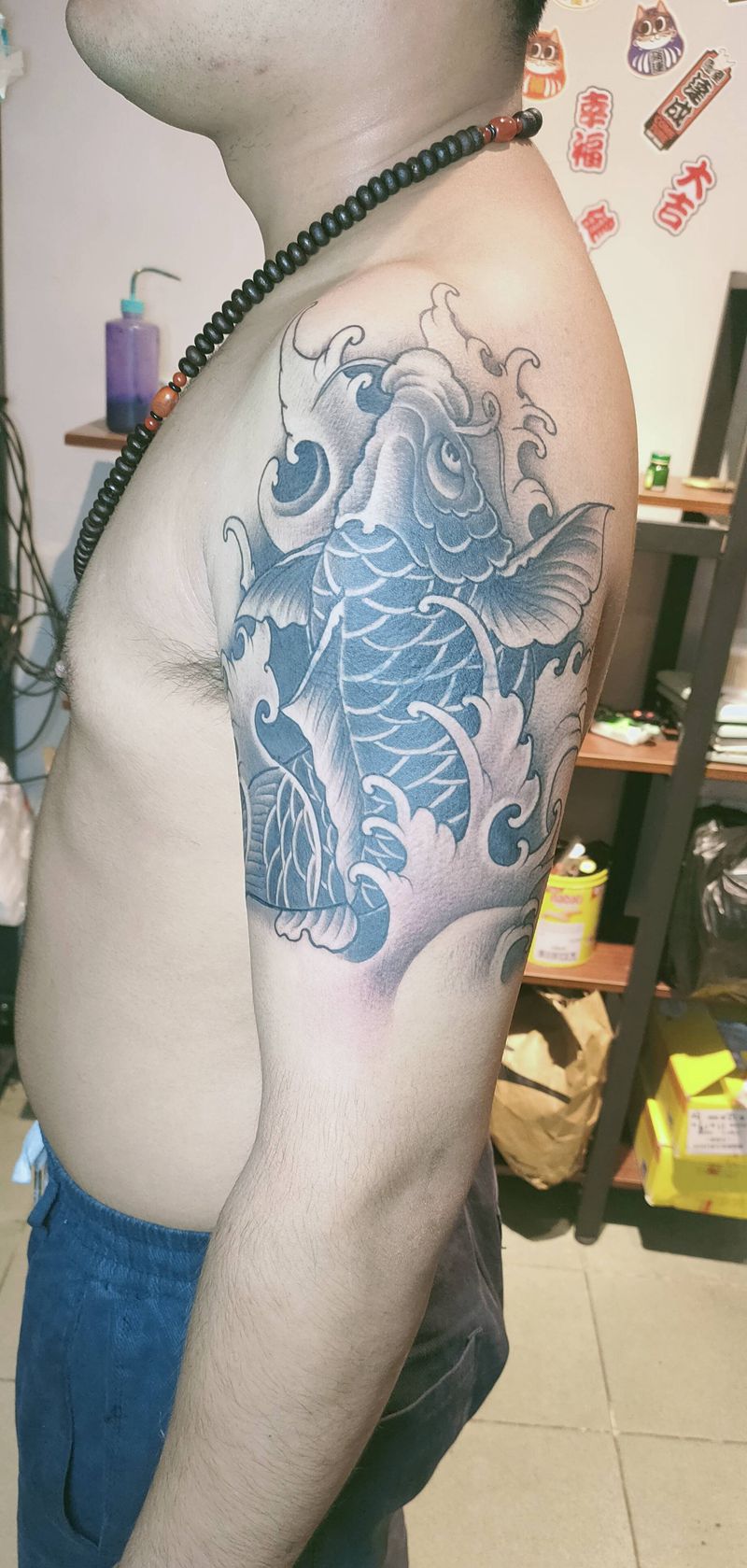 男士手臂鲤鱼,遮盖旧图纹身图片_手臂新传统纹身图案