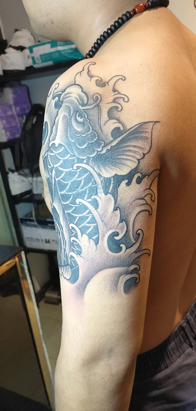 当前位置: 首页 >广东省深圳市纹身店-深圳市鸿运物业管理有限公司沙头管理处纹身图案>男士手臂鲤鱼,遮盖旧图纹身图片_手臂新传统纹身图案