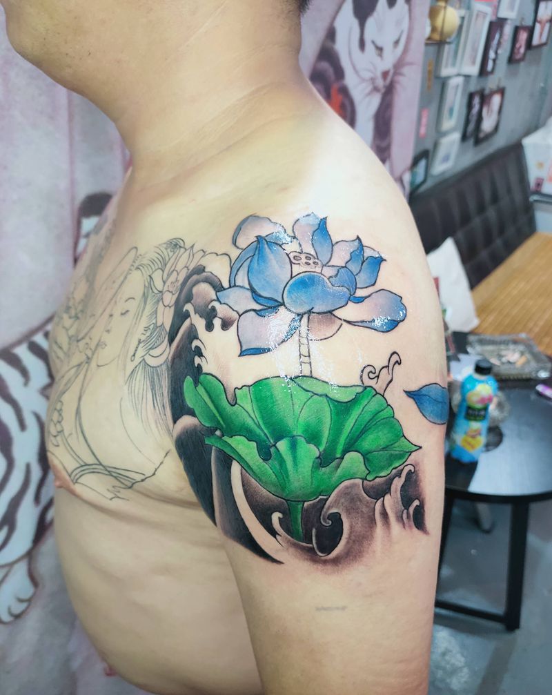 一组15张莲花纹身手
