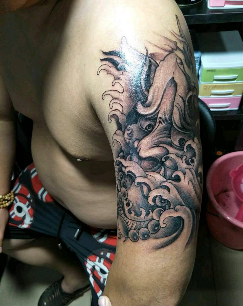 • 纹身吧推荐的披肩图腾半胛纹身图案作品展示