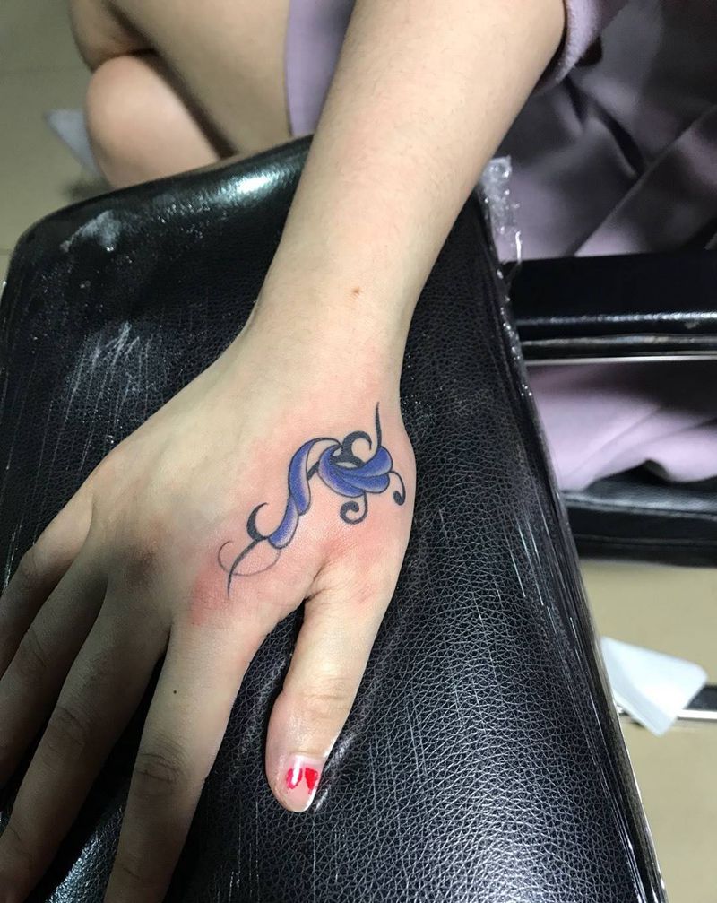 • 手背潮流时尚的玫瑰花眼睛纹身图案