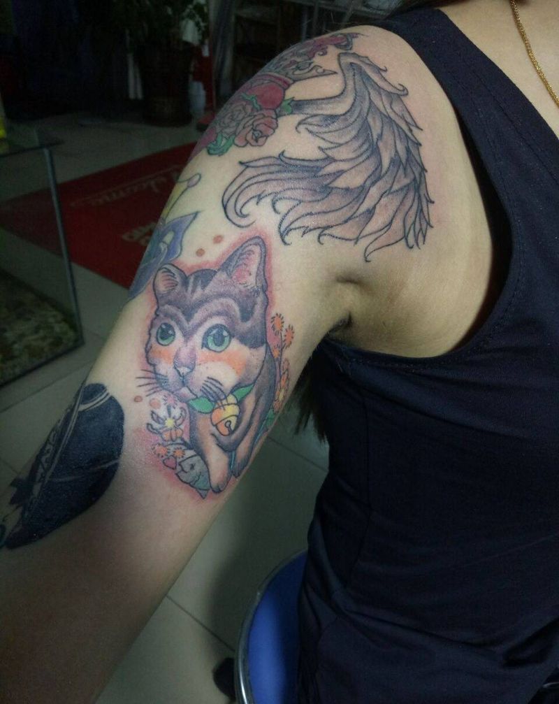 • T招财猫纹身图片