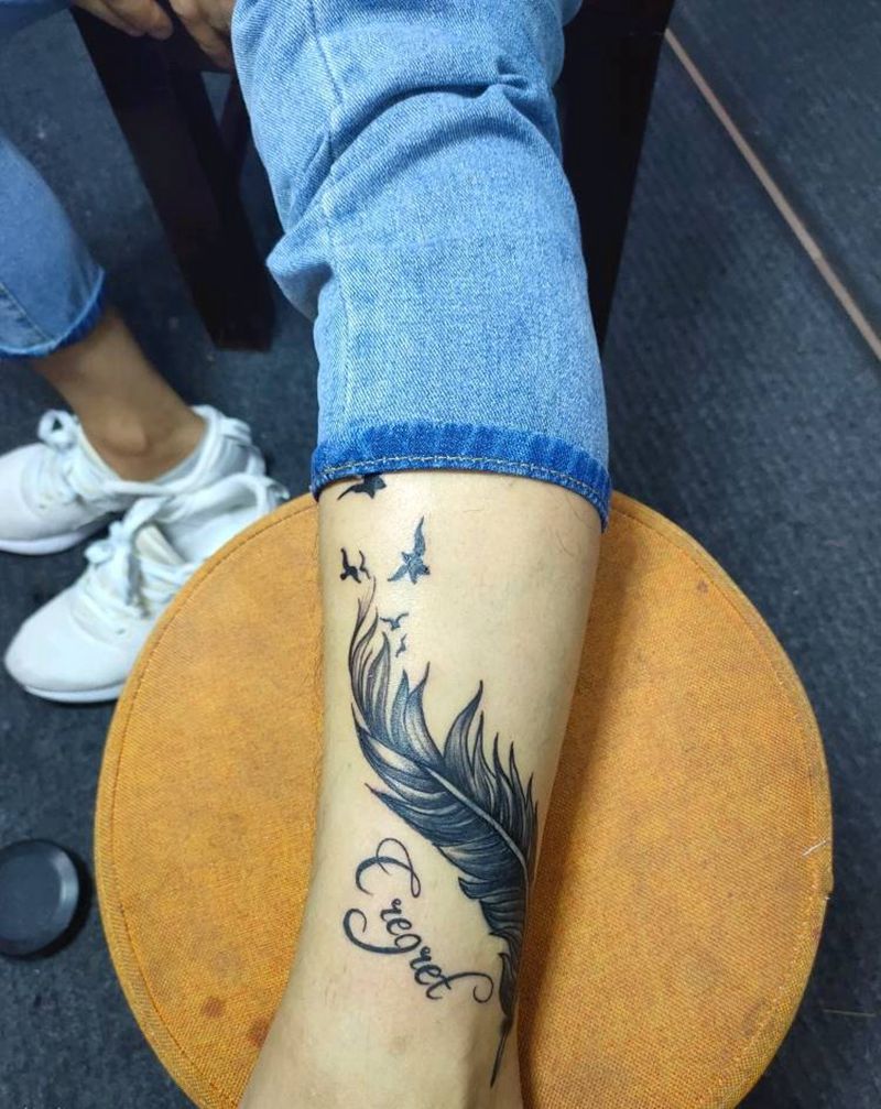 男士脚上羽毛,和男士手上龙头纹身图片_腿部手部老传统纹身图案