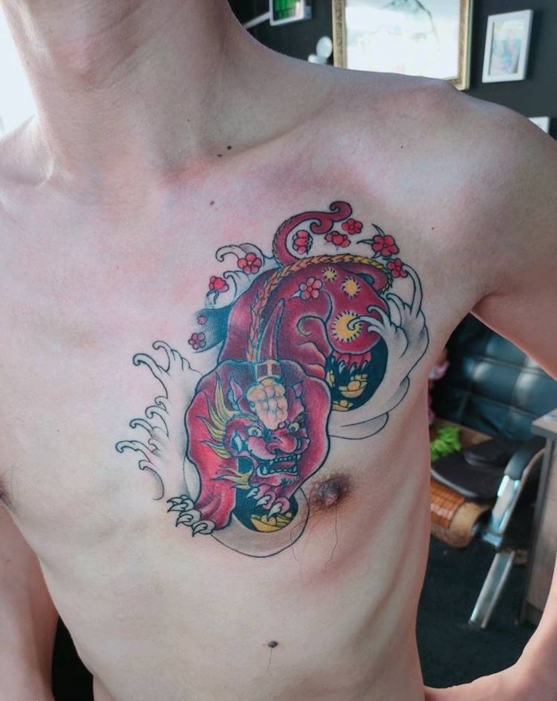 貔貅纹身图片_胸部老传统纹身图案