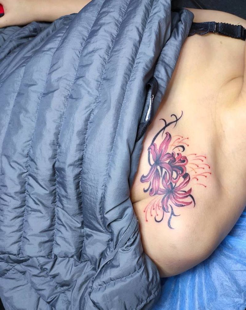 女士锁骨部位彼岸花纹身图片_胸部腰部新传统纹身图案