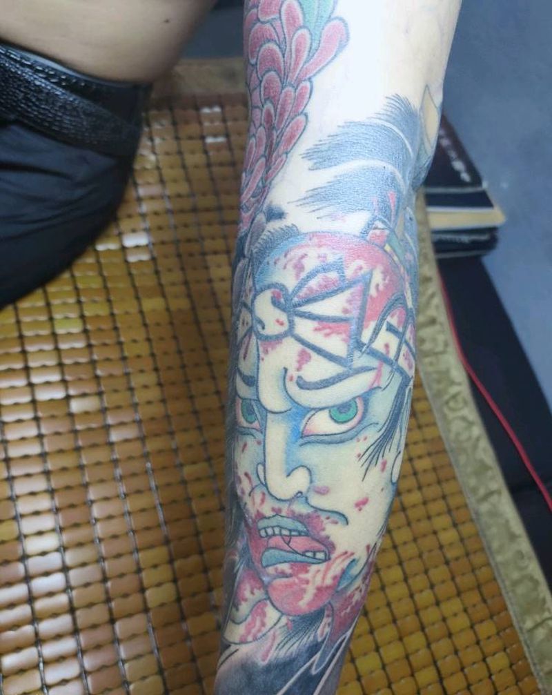当前位置: 首页 >广东省深圳市纹身店-深圳市鸿运物业管理有限公司沙头管理处纹身图案>老传统风格花臂(未完成)纹身图片_手部老传统纹身图案