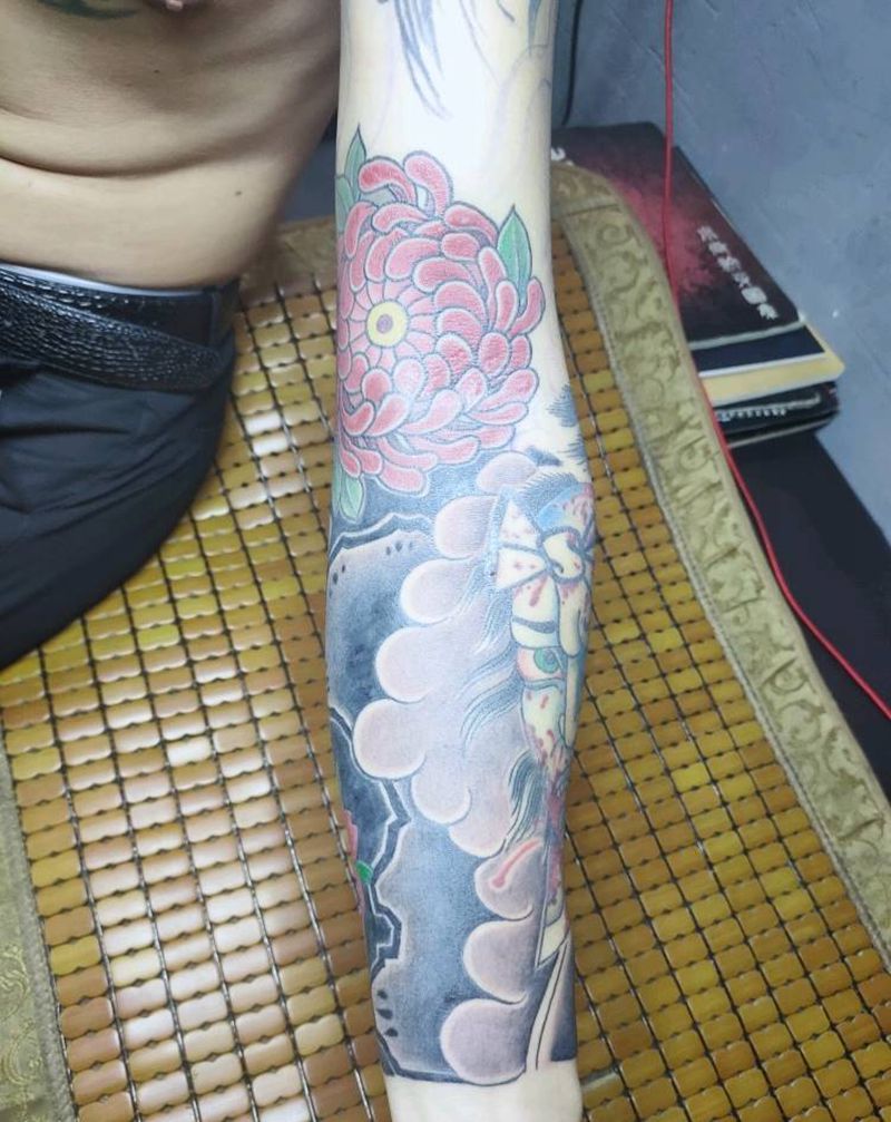 当前位置: 首页 >广东省深圳市纹身店-深圳市鸿运物业管理有限公司沙头管理处纹身图案>老传统风格花臂(未完成)纹身图片_手部老传统纹身图案