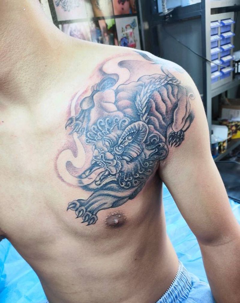 男士胸前貔貅纹身图片_胸部新传统纹身图案