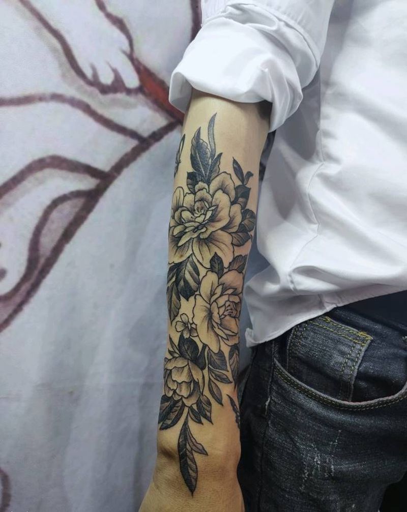 男士手臂(素花)纹身图片_手部新传统纹身图案