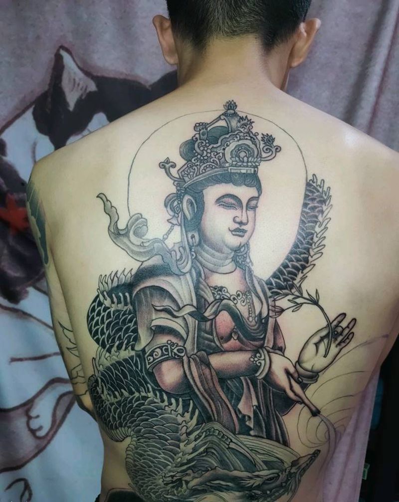 男士后背(观音)纹身图片_背部新传统纹身图案