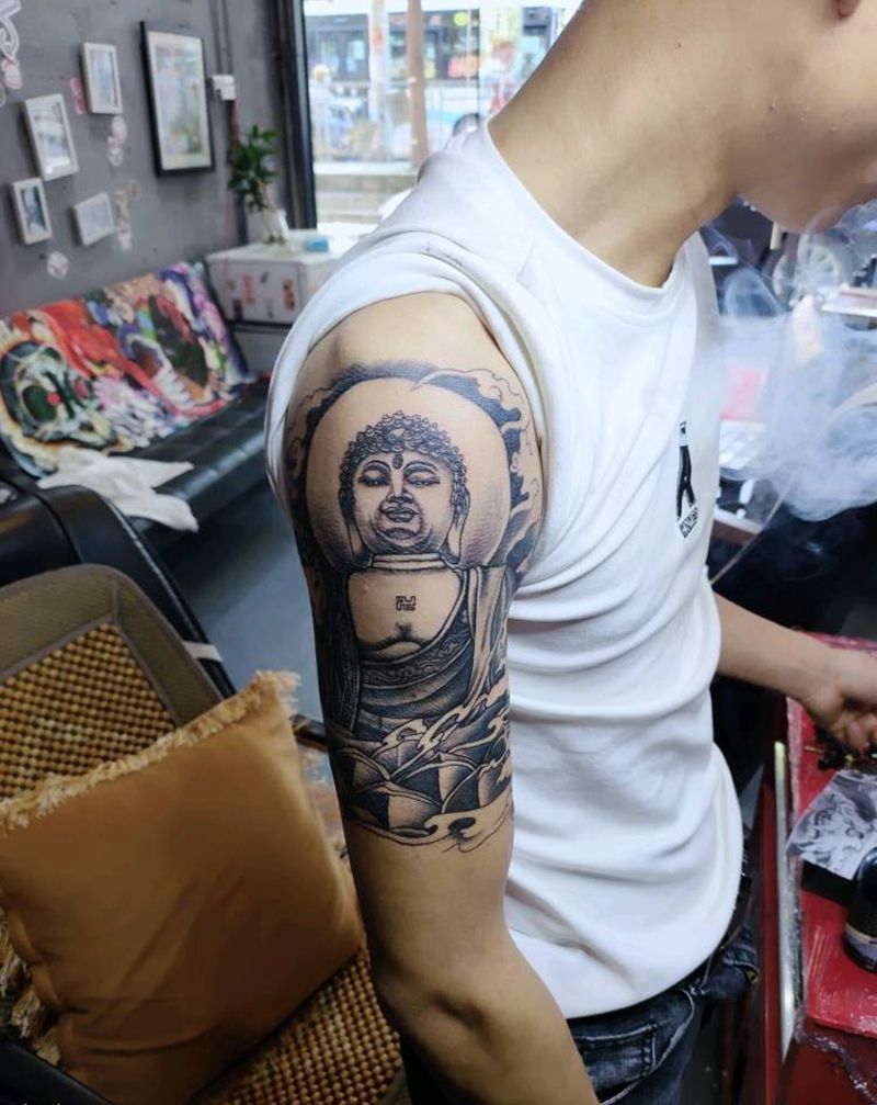 手臂(释迦摩尼)纹身图片_手臂新传统纹身图案