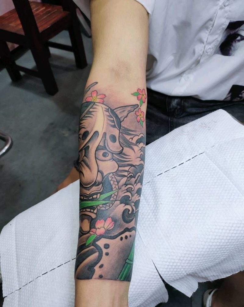 男士半臂(般若)纹身图片_手臂手部新传统纹身图案