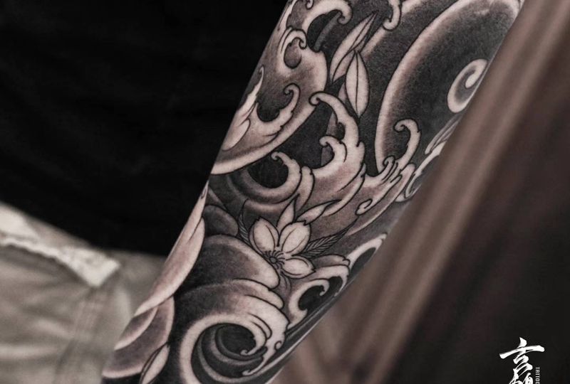当前位置: 首页 >广东省深圳市纹身店-玄鹤刺青纹身图案>浪纹身图片_手臂新传统水浪纹身图案