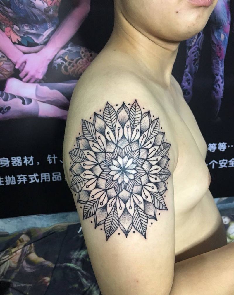 • 纹身吧推荐的披肩图腾半胛纹身图案作品展示
