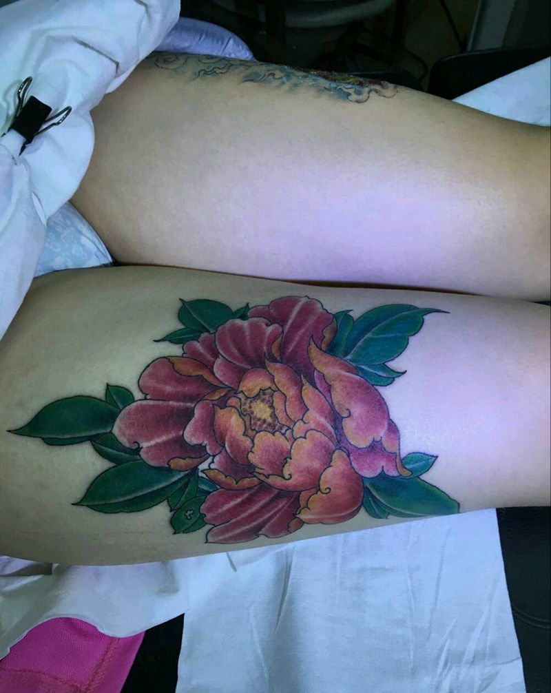 当前位置: 首页 >广东省深圳市纹身店-名海刺青纹身图案>牡丹花纹身图片_腿部传统植物成品纹身图案