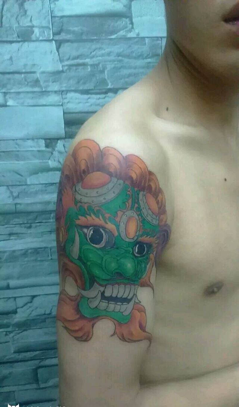 当前位置: 首页 >广东省深圳市纹身店-名海刺青纹身图案>狮头纹身图片_手臂传统动物成品纹身图案