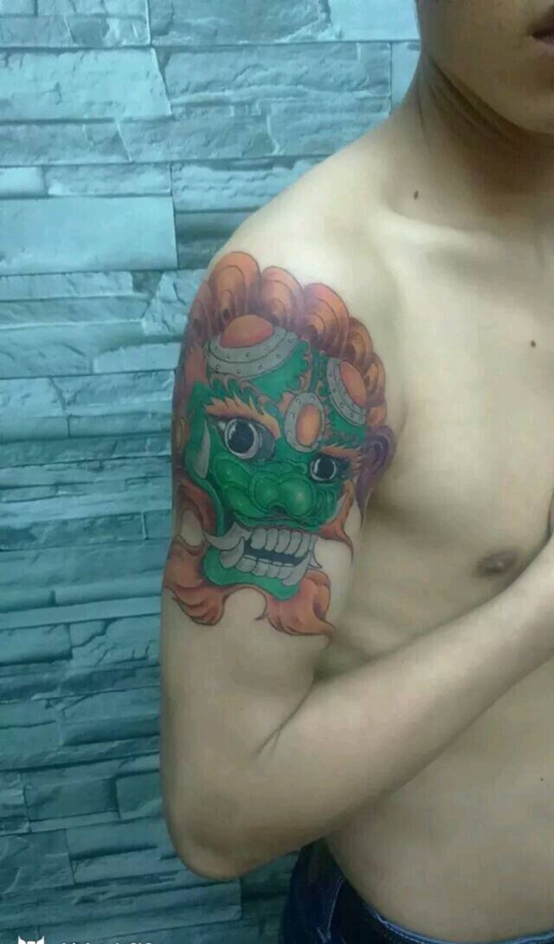 当前位置: 首页 >广东省深圳市纹身店-名海刺青纹身图案>狮头纹身图片_手臂传统动物成品纹身图案