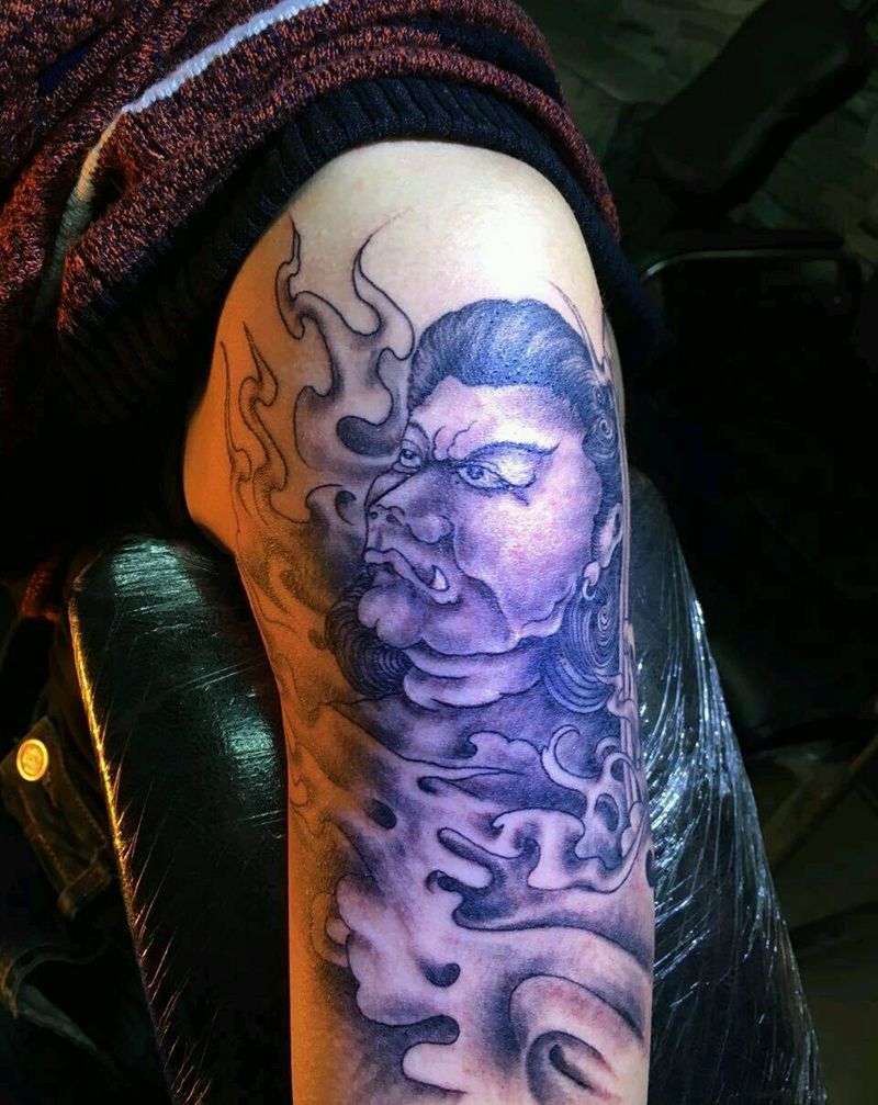 不动明王纹身图片_手臂传统人物成品纹身图案
